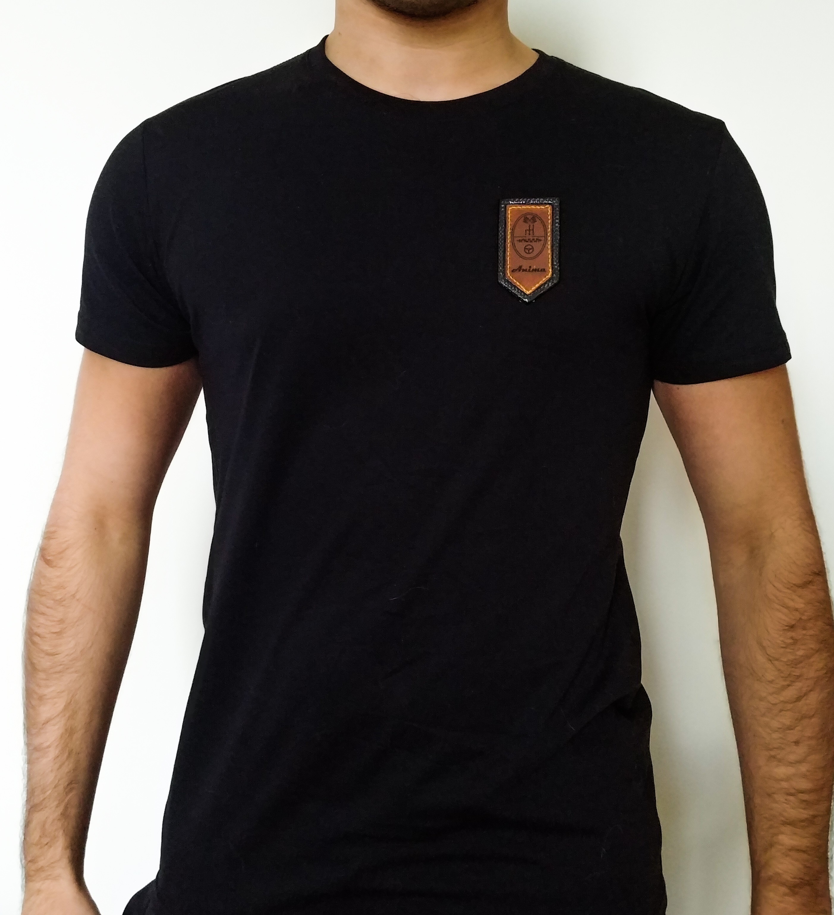 Ecusson fibre de carbone et cuir gravé.